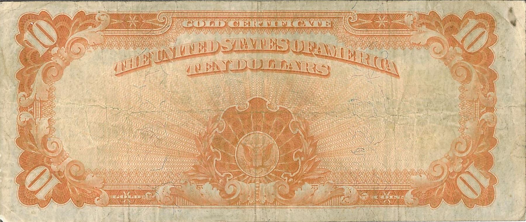 One 1922 $10 Gold Certificate Bank Note. The serial number is 92901269.