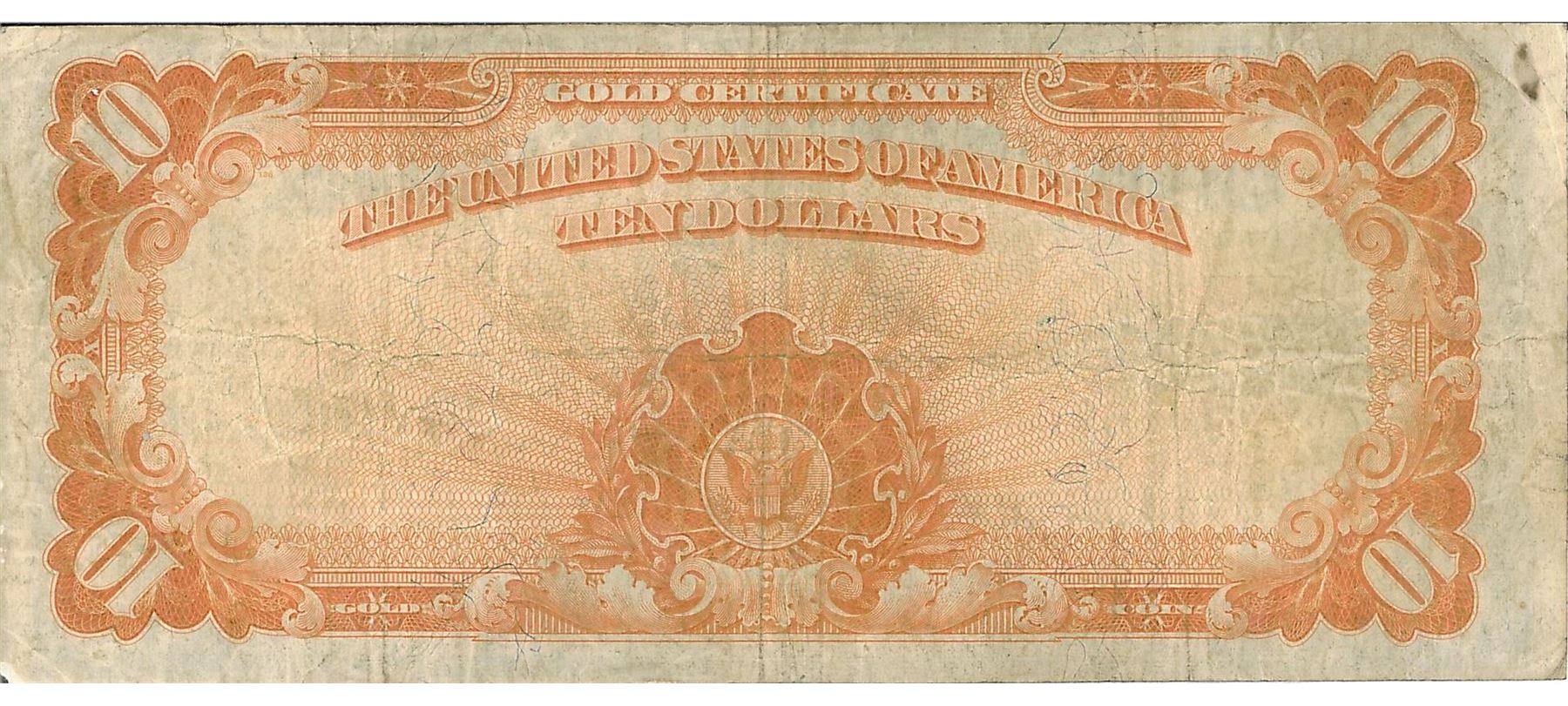 One 1922 $10 Gold Certificate Bank Note. The serial number is 92901269.