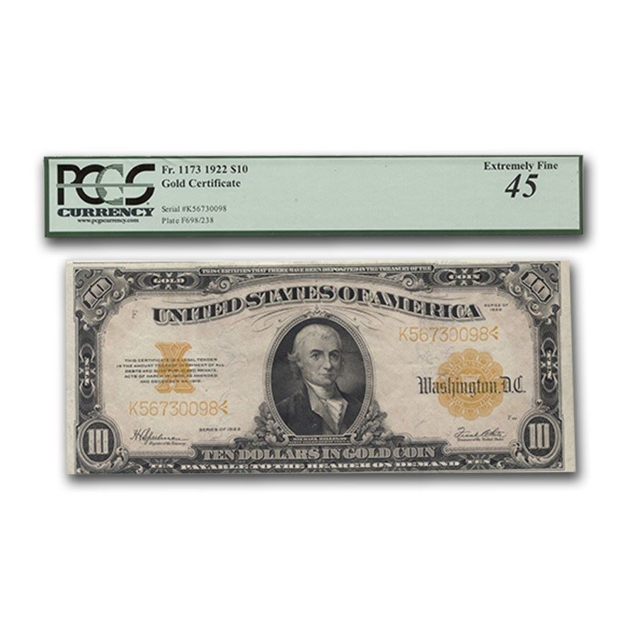 1922 $10 Gold Certificate Hillegas XF-45 PCGS