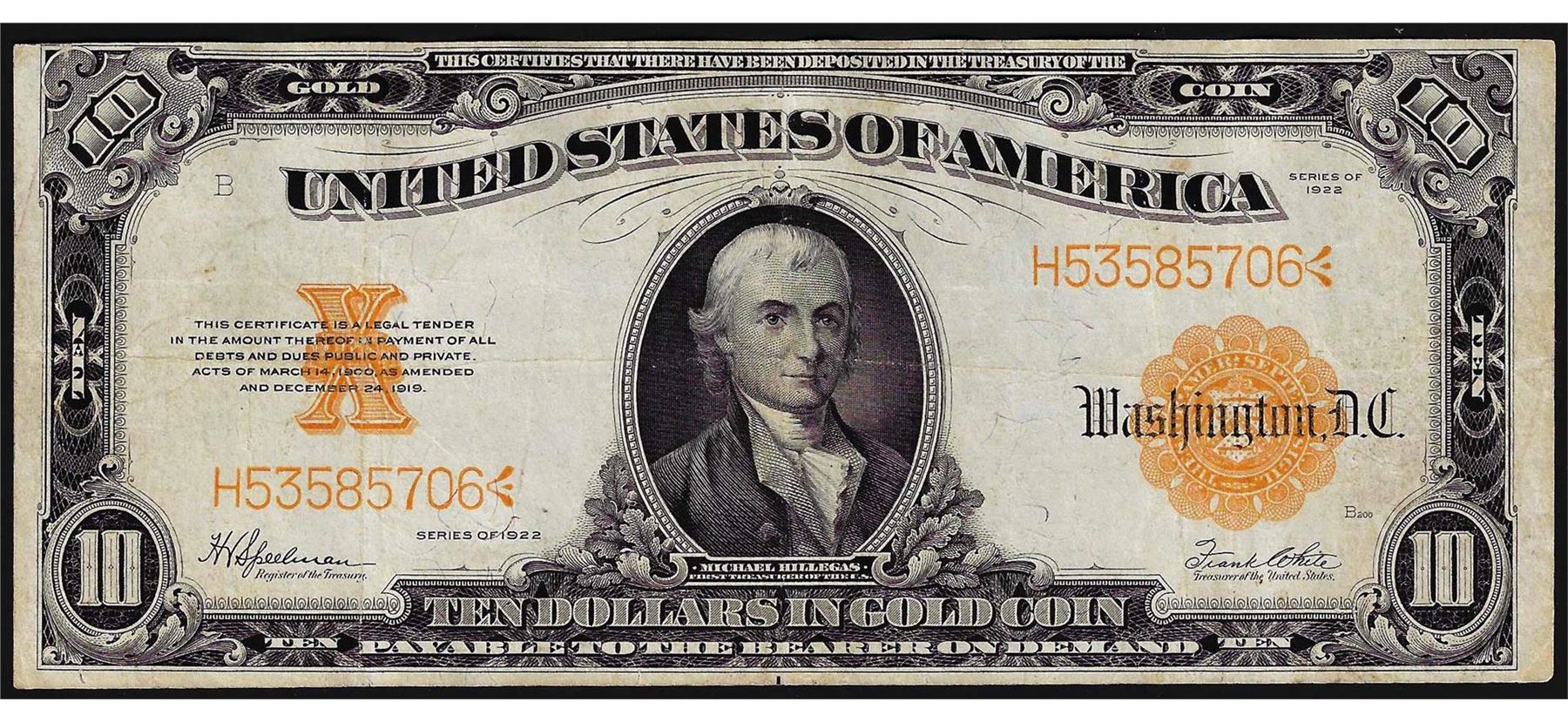 One 1922 $10 Gold Certificate Note.