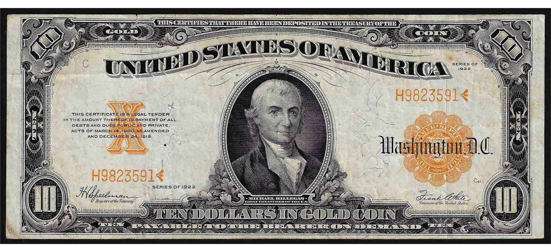 One 1922 $10 Gold Certificate Note.