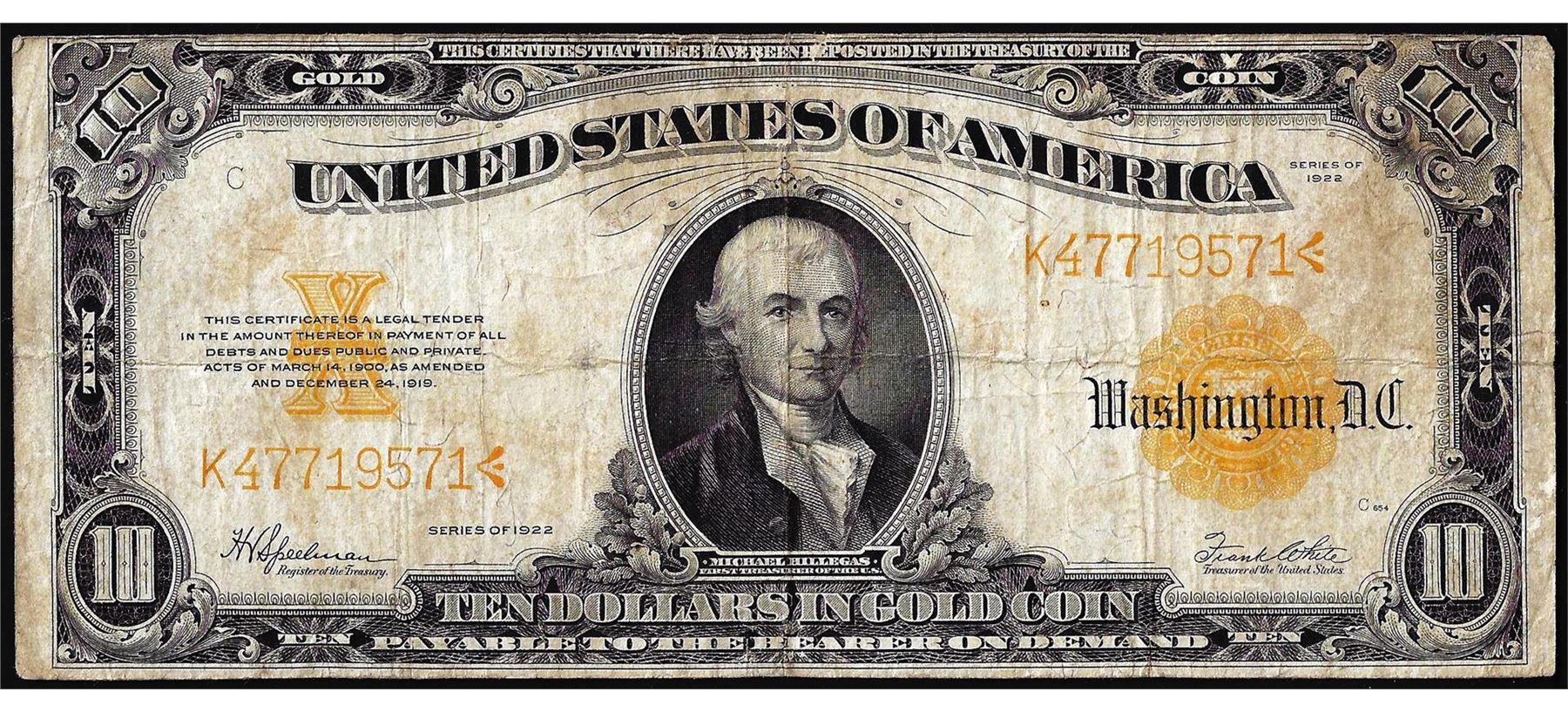 One 1922 $10 Gold Certificate Note.