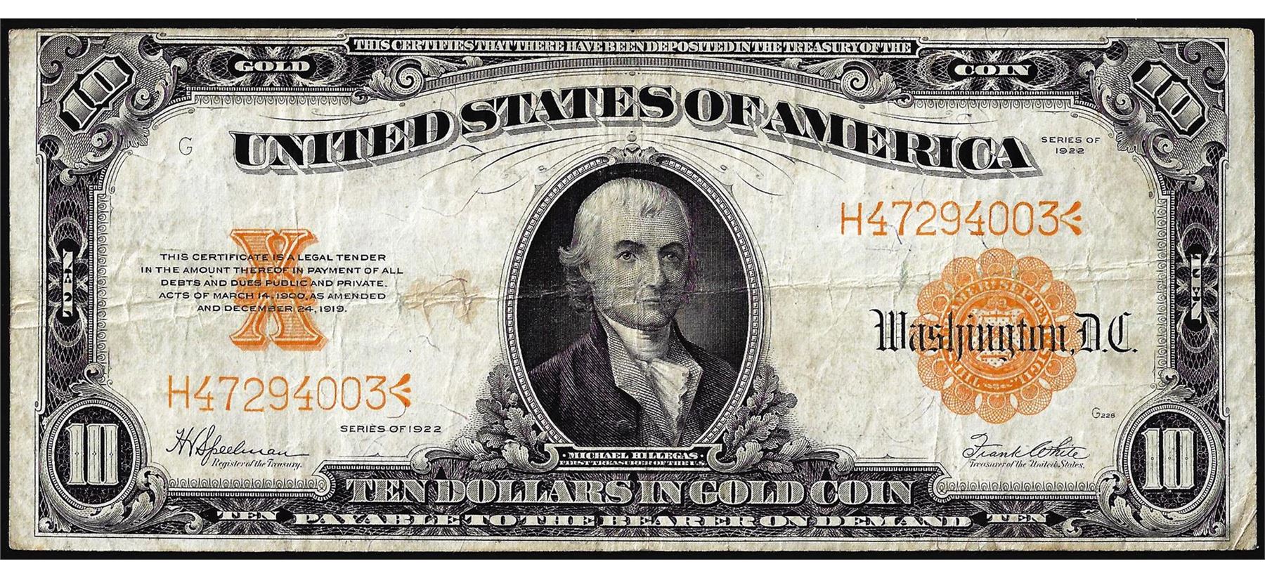 One 1922 $10 Gold Certificate Note.
