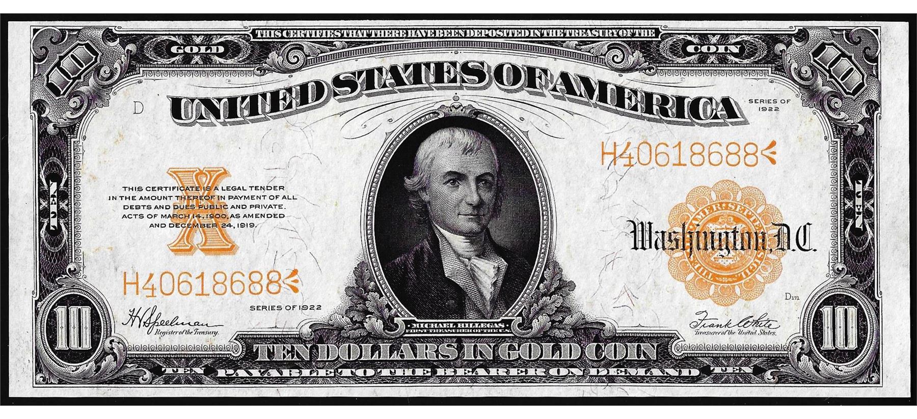 One 1922 $10 Gold Certificate Note.