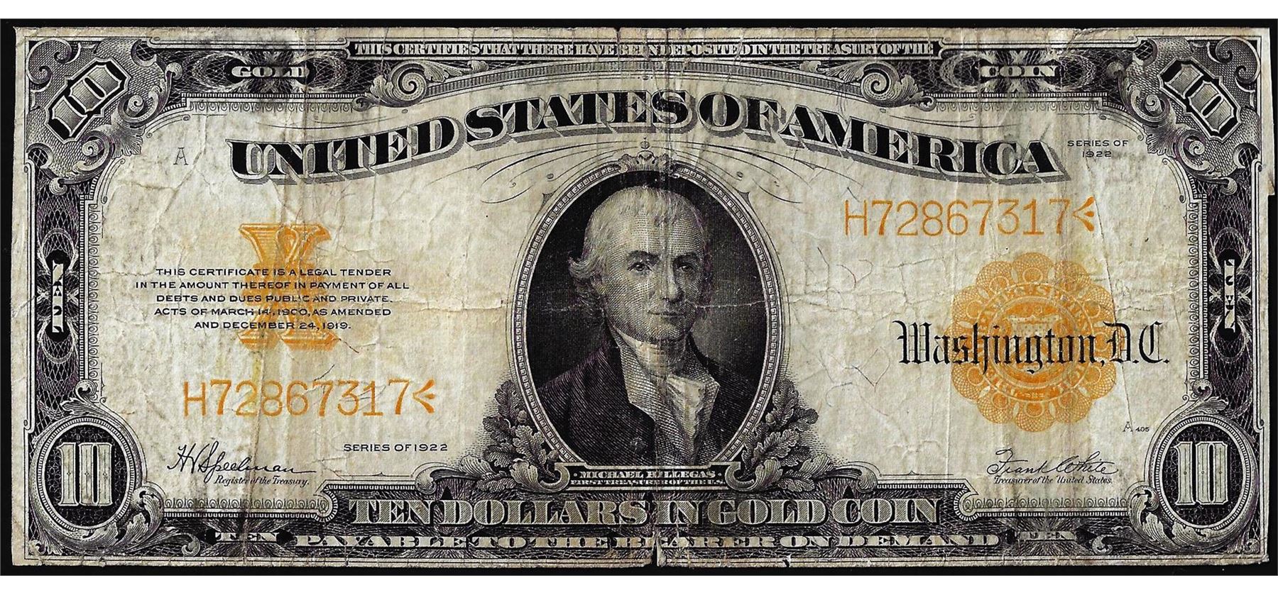 One 1922 $10 Gold Certificate Note.