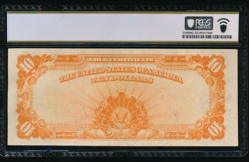 One 1922 $10 Gold Certificate PCGS 53PPQ.