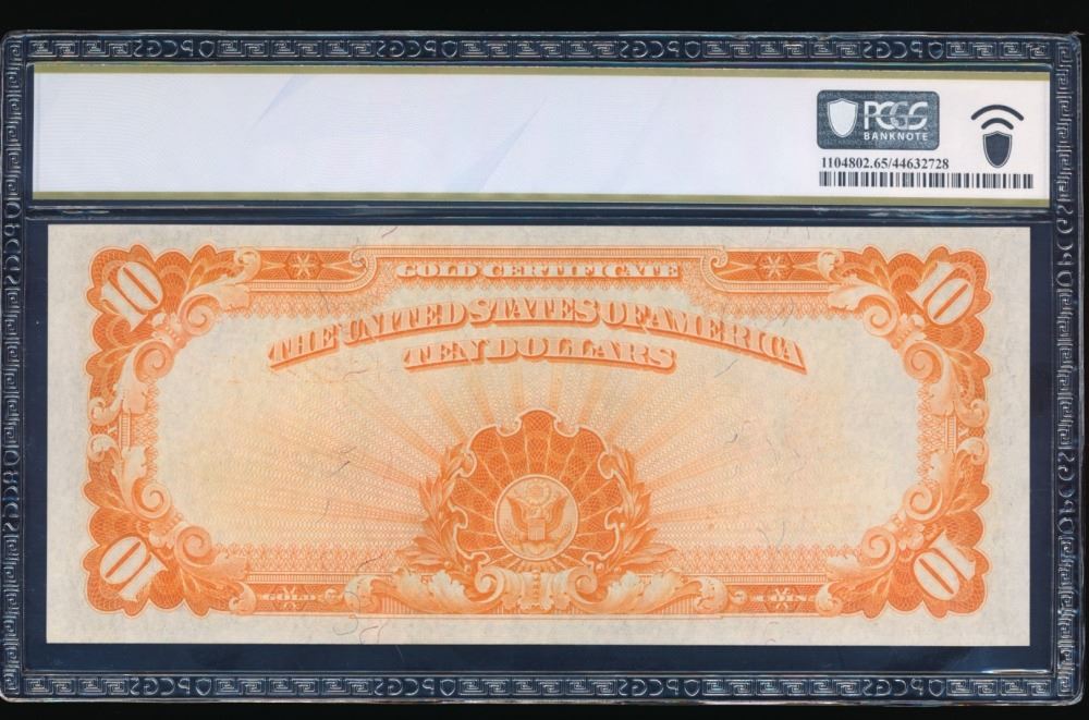 One 1922 $10 Gold Certificate PCGS 65PPQ.