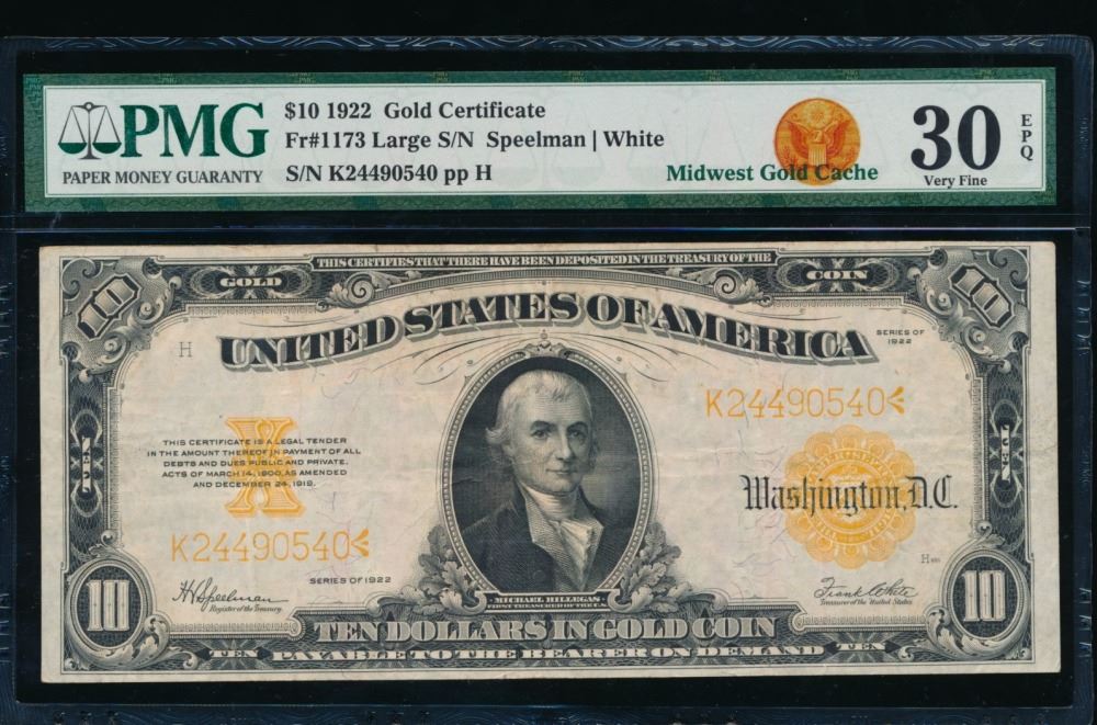 One 1922 $10 Gold Certificate PMG 30EPQ.