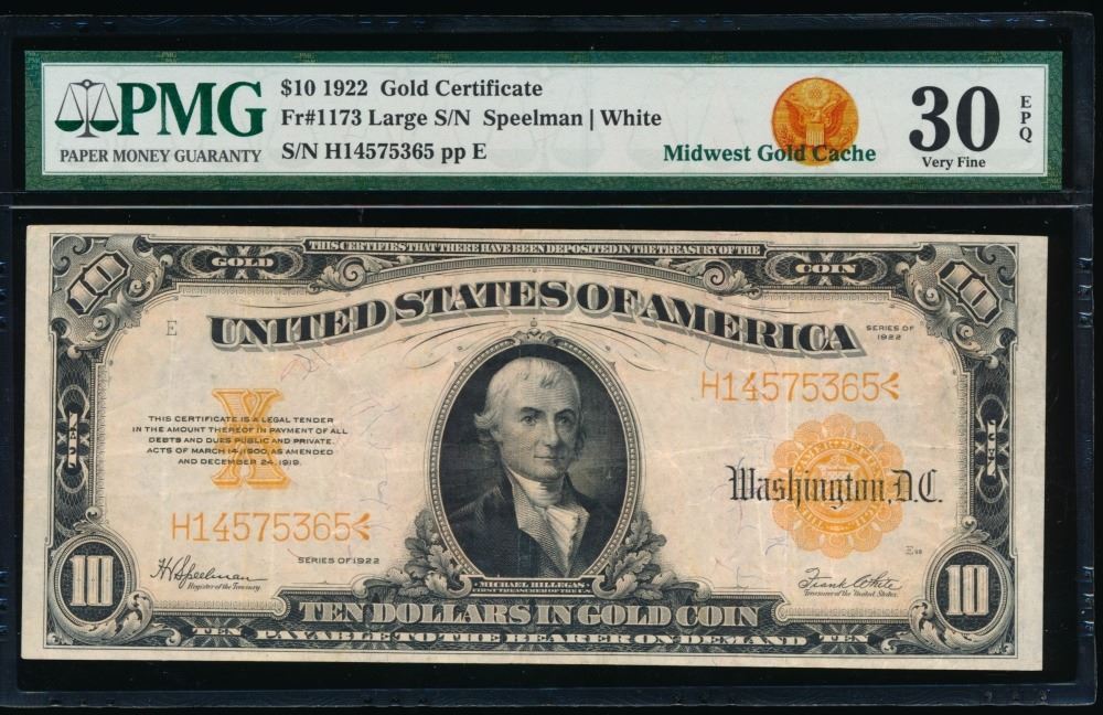One 1922 $10 Gold Certificate PMG 30EPQ.