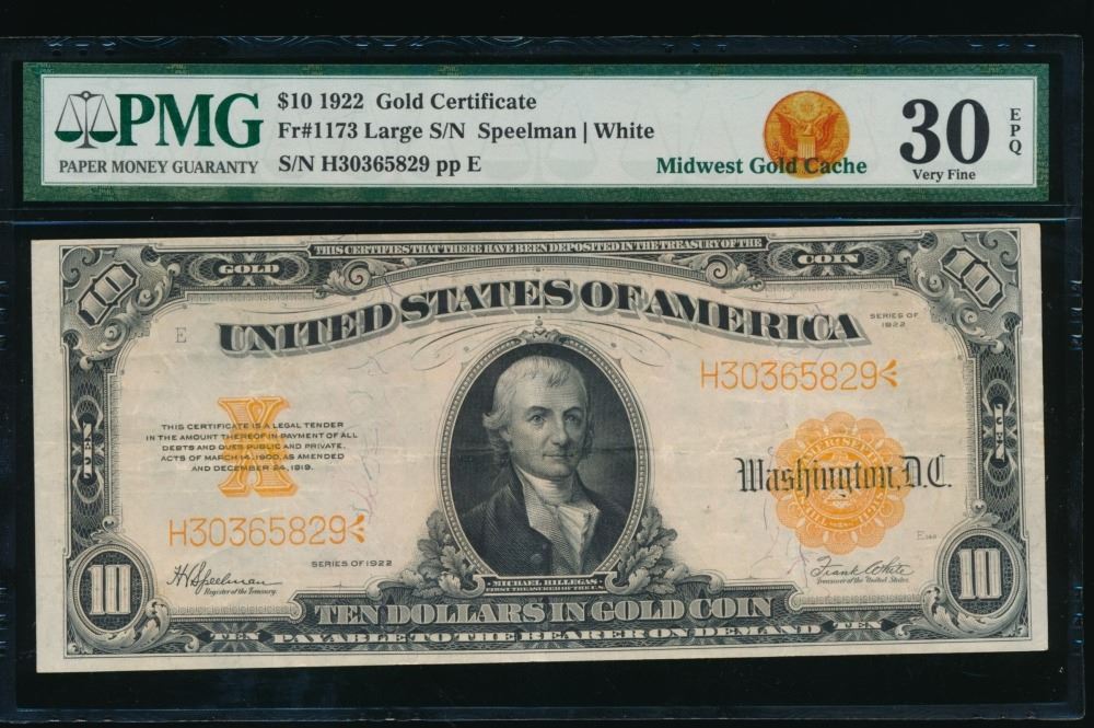One 1922 $10 Gold Certificate PMG 30EPQ.
