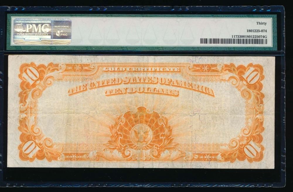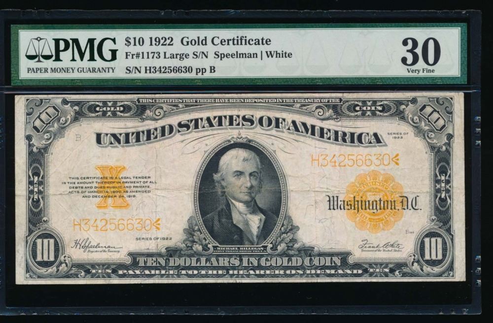 One 1922 $10 Gold Certificate PMG 30.
