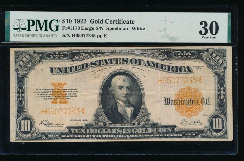 One 1922 $10 Gold Certificate PMG 30.