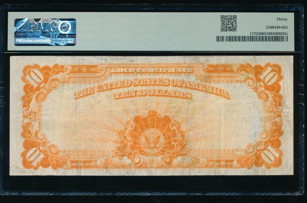 One 1922 $10 Gold Certificate PMG 30.