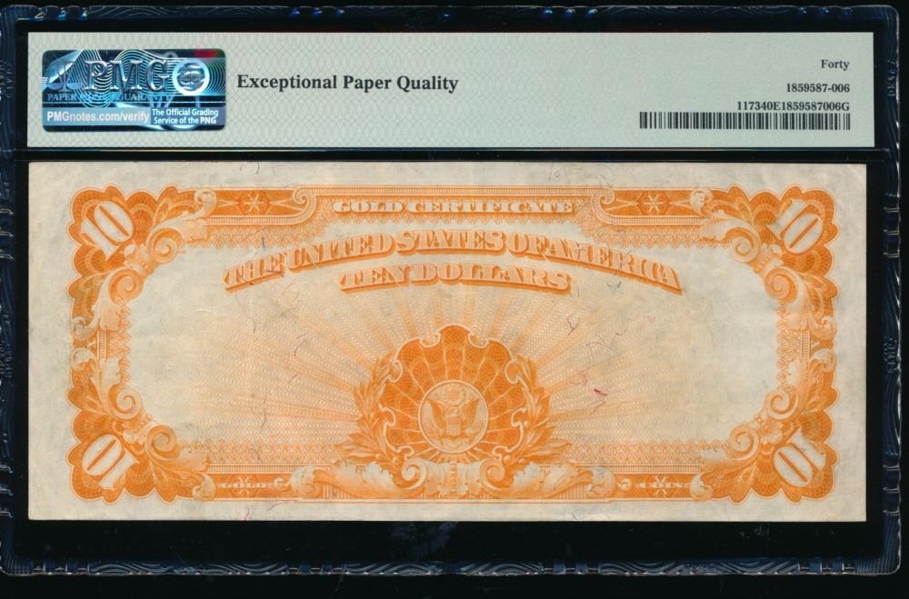 One 1922 $10 Gold Certificate PMG 40EPQ.