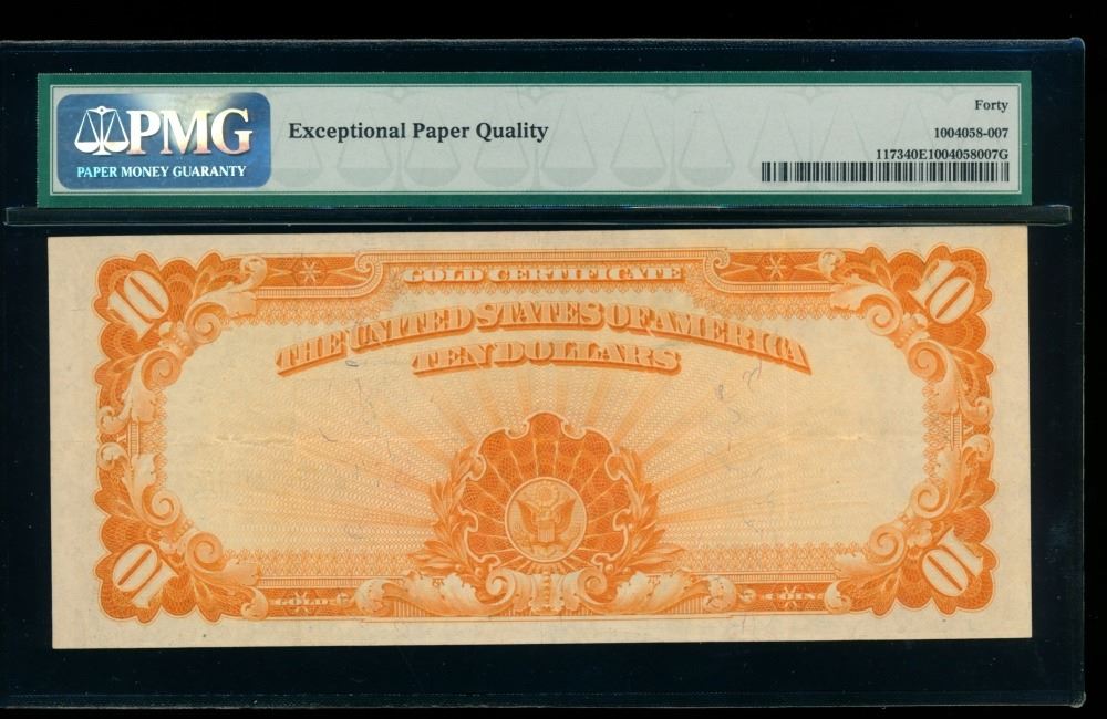 One 1922 $10 Gold Certificate PMG 40EPQ.