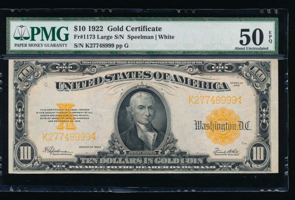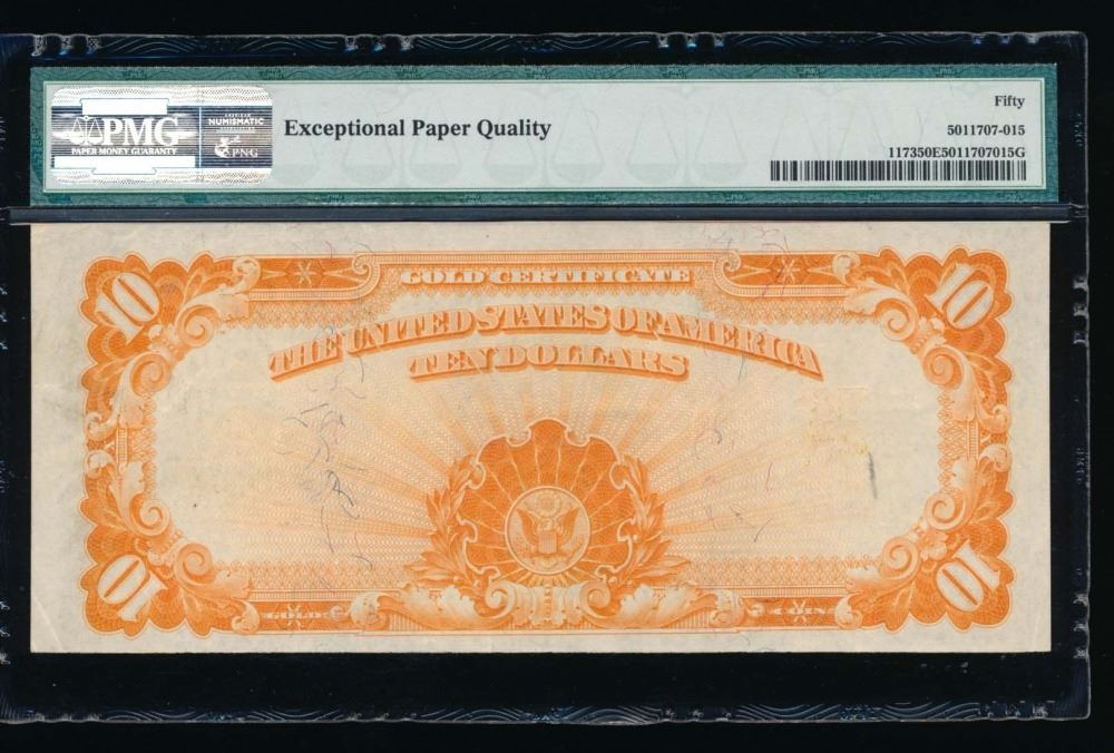 One 1922 $10 Gold Certificate PMG 50EPQ.