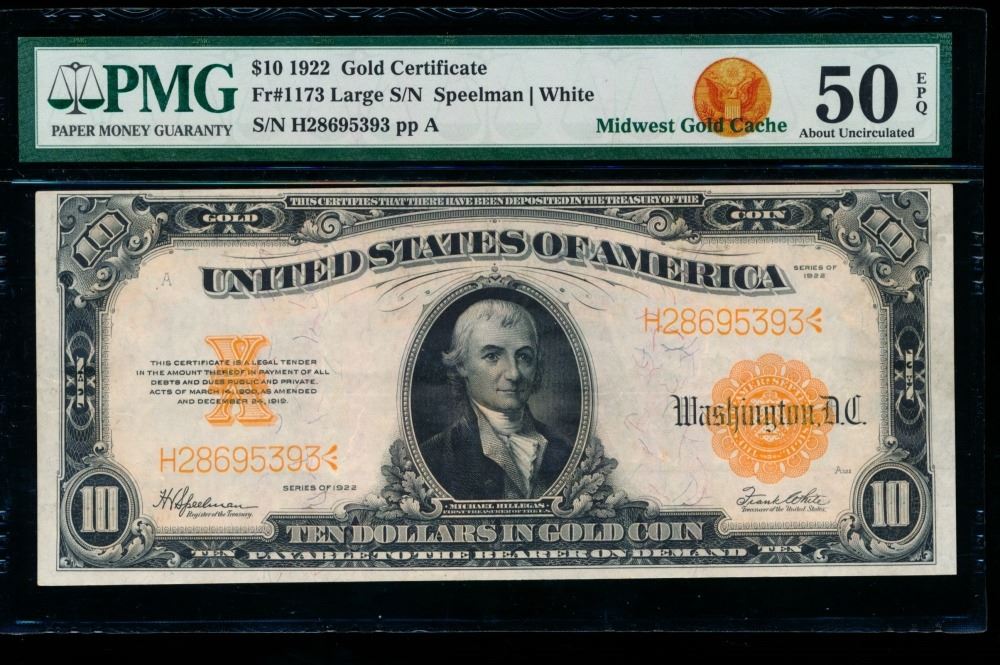 One 1922 $10 Gold Certificate PMG 50EPQ.