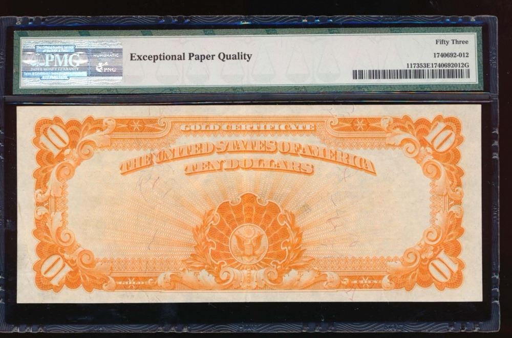 One 1922 $10 Gold Certificate PMG 53EPQ.