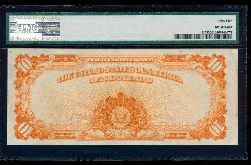 One 1922 $10 Gold Certificate PMG 55.