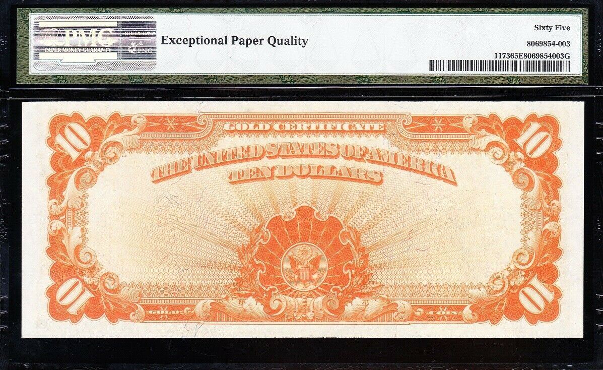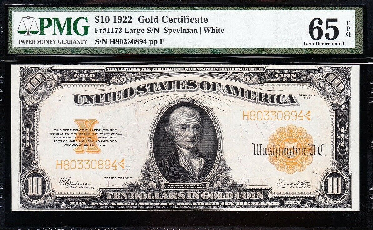 One 1922 $10 Gold Certificate PMG 65EPQ.