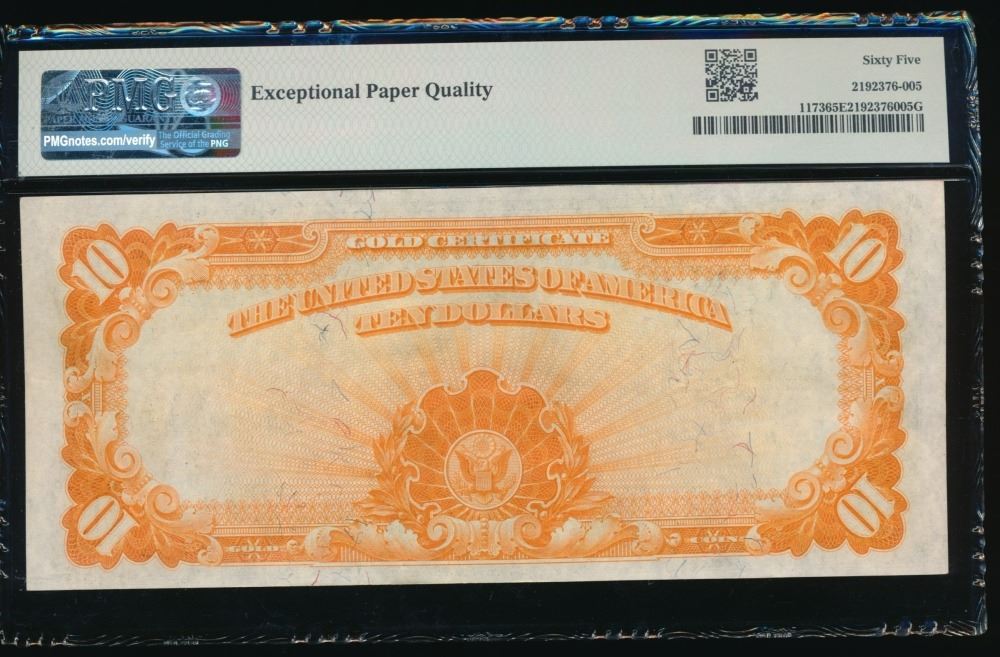 One 1922 $10 Gold Certificate PMG 65EPQ.