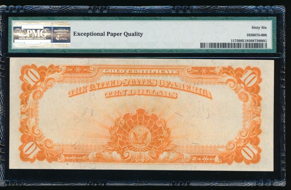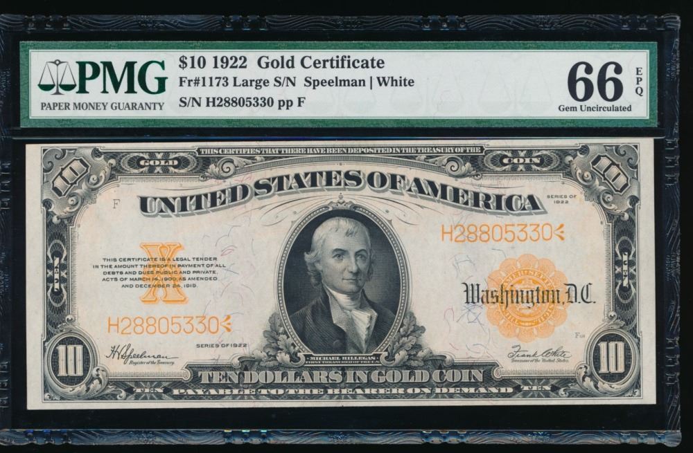 One 1922 $10 Gold Certificate PMG 66EPQ.