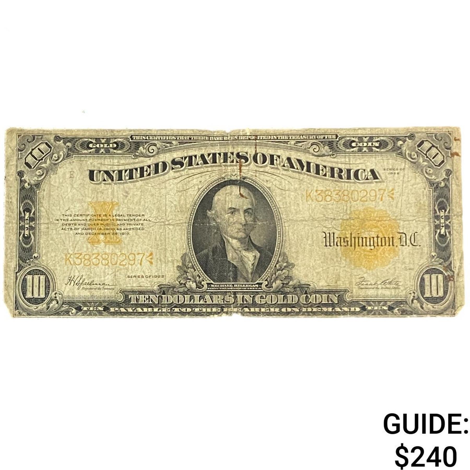 1922 $10 Gold Certificate