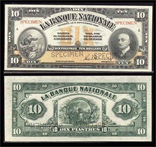 1922 $10 La Banque Nationale, CH-510-22-04S. A nice UNC, Specimen type chartered note.