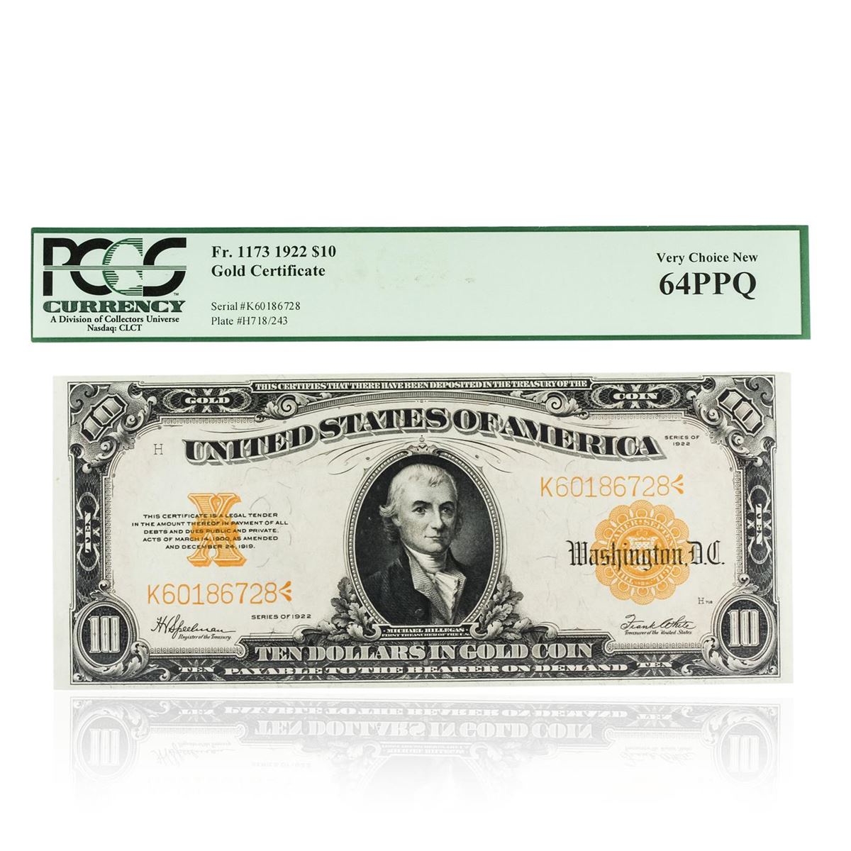 One 1922 $10 PCGS Gold Certificate. PCGS Certified.