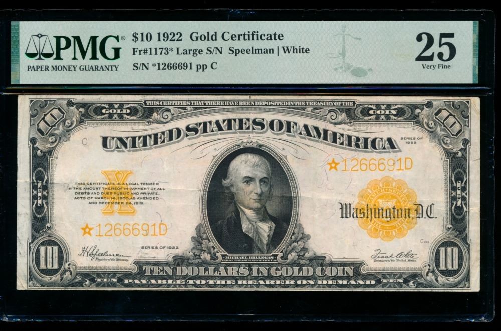 One 1922 $10 STAR Gold Certificate PCGS 25.