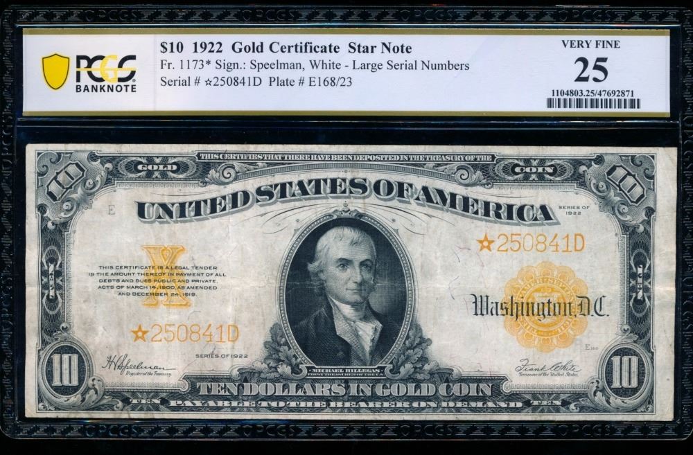 One 1922 $10 STAR Gold Certificate PCGS 25.