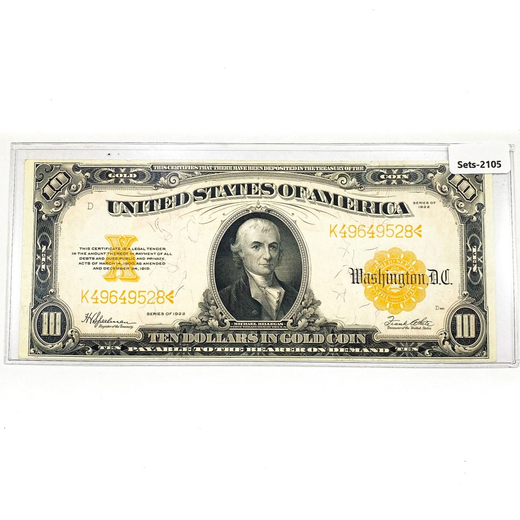 1922 $10 Ten Dollar Gold Cert.