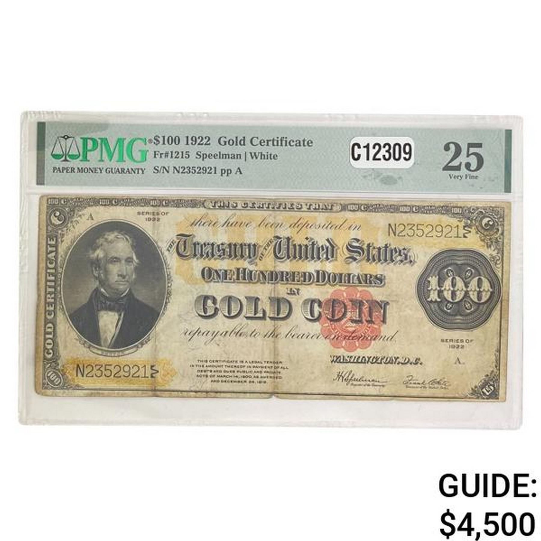 1922 $100 "BENTON" GOLD CERTIFICATE PMG VF-25