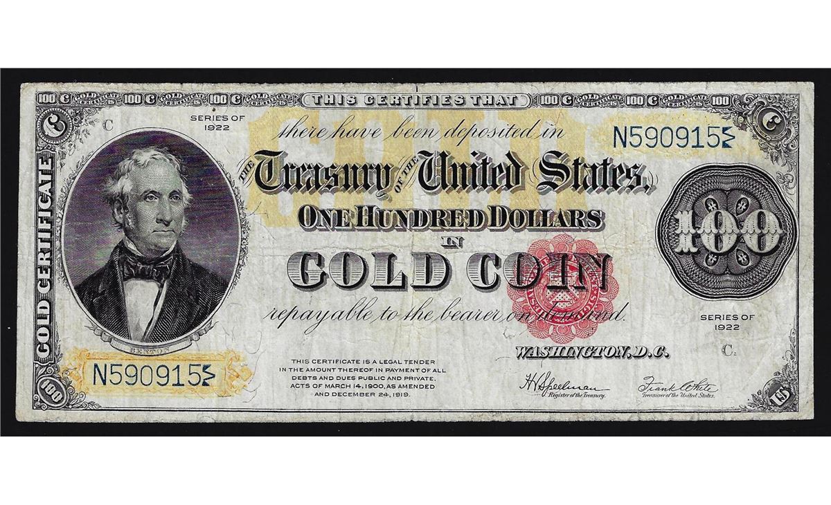 One 1922 $100 Gold Certificate Note Fr. 1215.