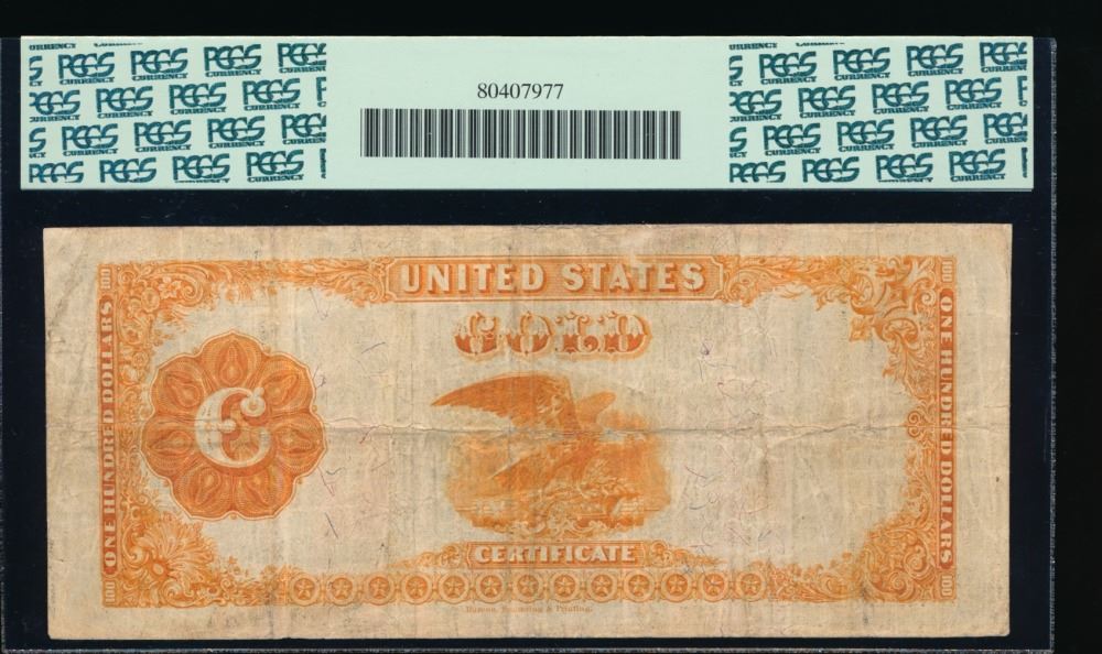 One 1922 $100 Gold Certificate PCGS 20PPQ.