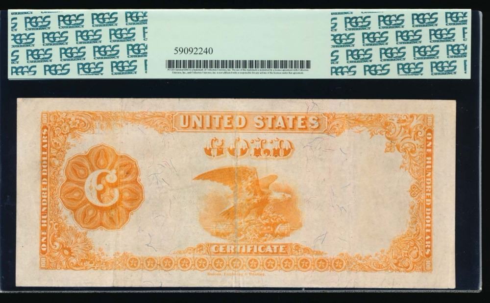 One 1922 $100 Gold Certificate PCGS 35 Very Fine.