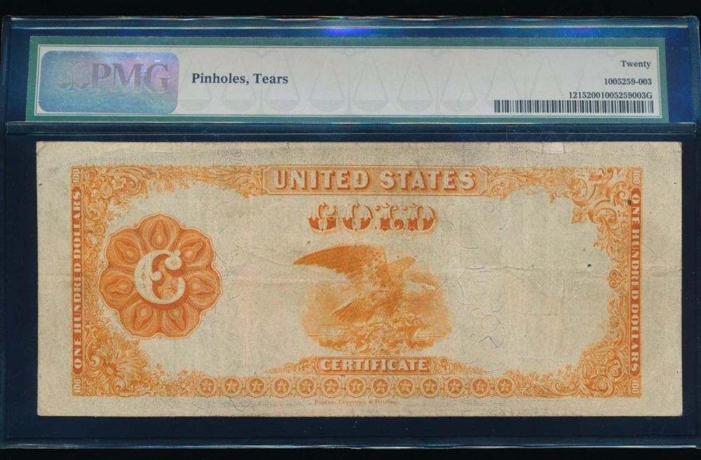 One 1922 $100 Gold Certificate PMG 20.