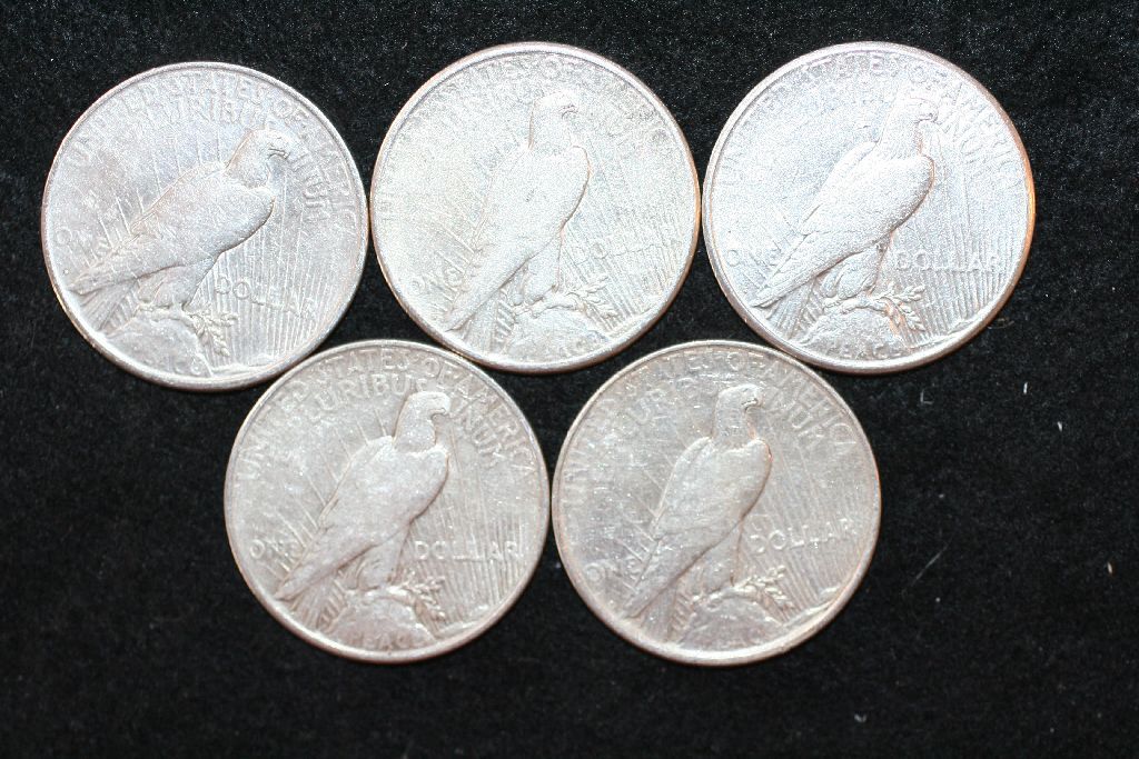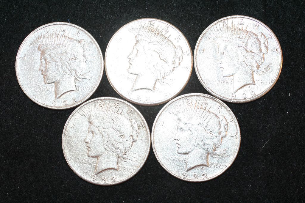 1922, 1922-D (2) & 1922-S (2) Peace $1, Lot of 5