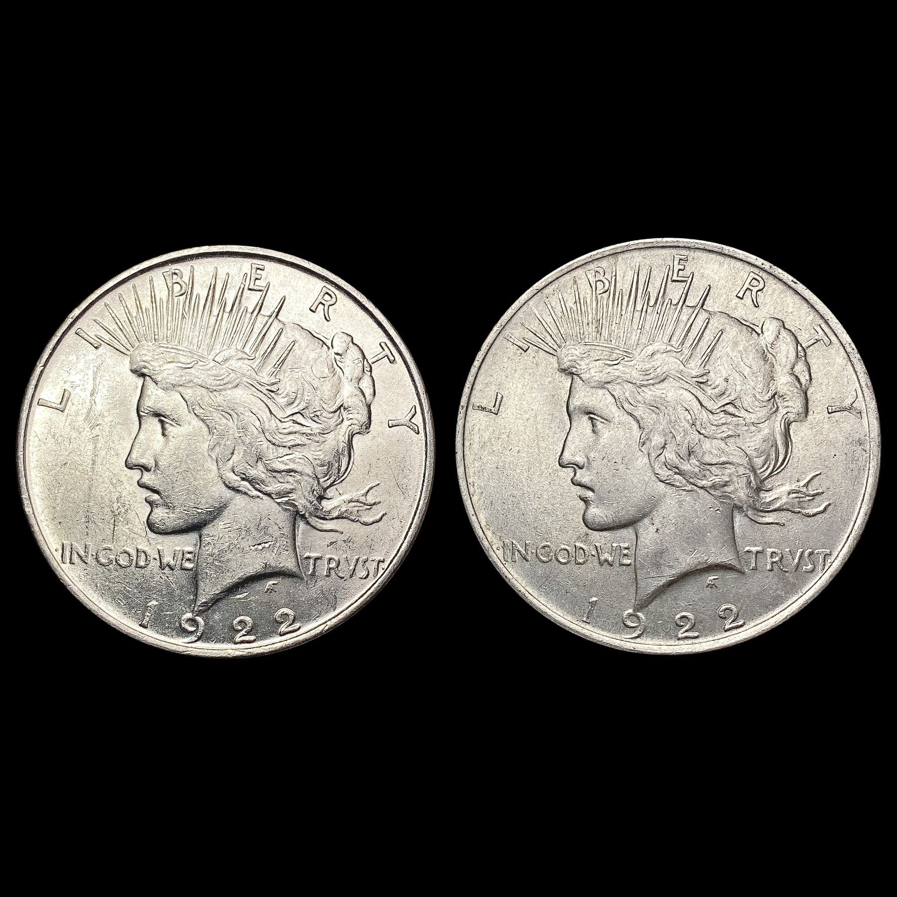 1922, 1922-D US Silver Peace Dollar Collection [2 Coins] HIGH GRADE