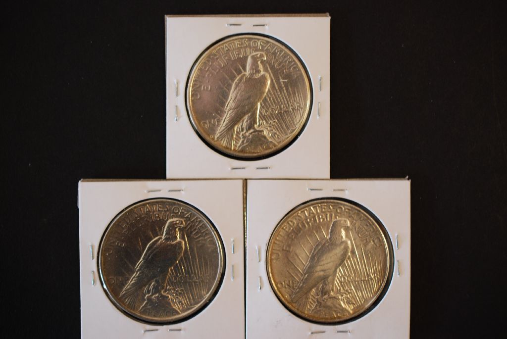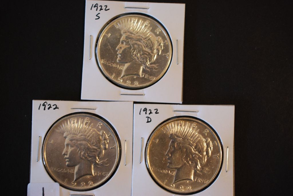 1922, 1922-S & 1922-D Peace $1; Lot of 3; EST. $75-140