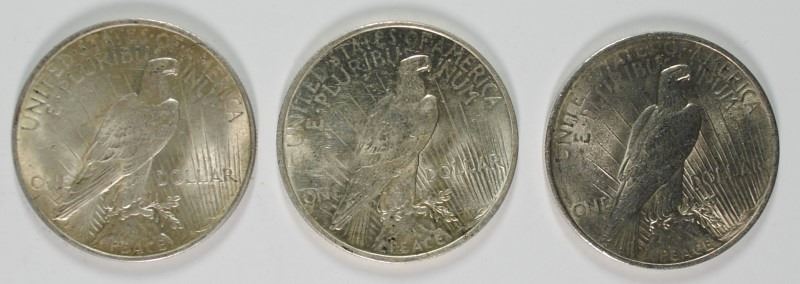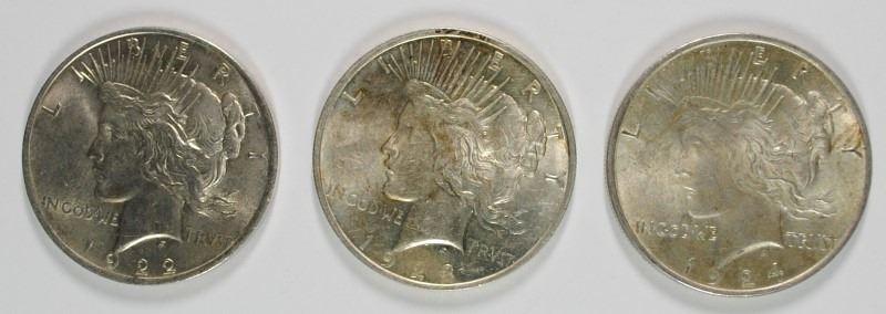 1922, 1923 & 1924 PEACE SILVER DOLLARS, UNC
