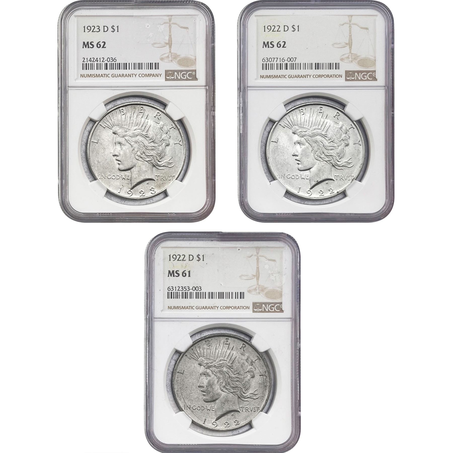 1922-1923 [3] Silver Peace Dollar NGC MS61-62