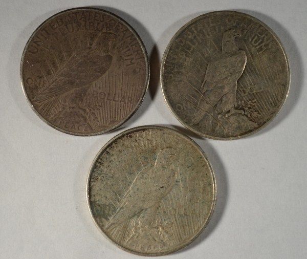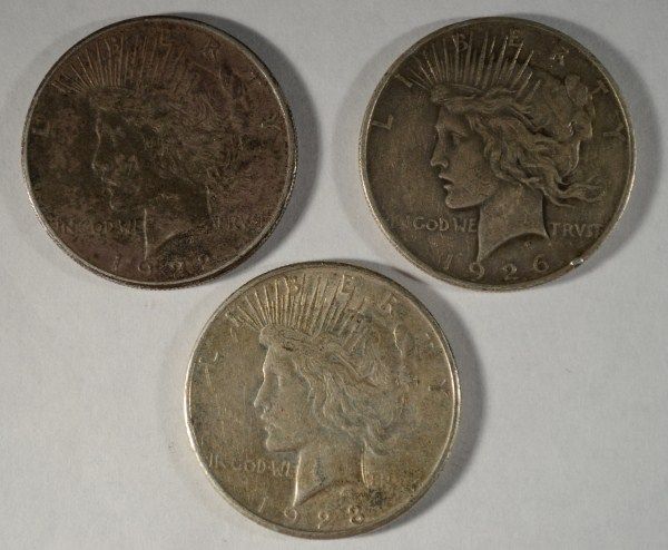 1922, 1923, AND 1926 PEACE SILVER DOLLARS IN CIRCULATED CONDITION