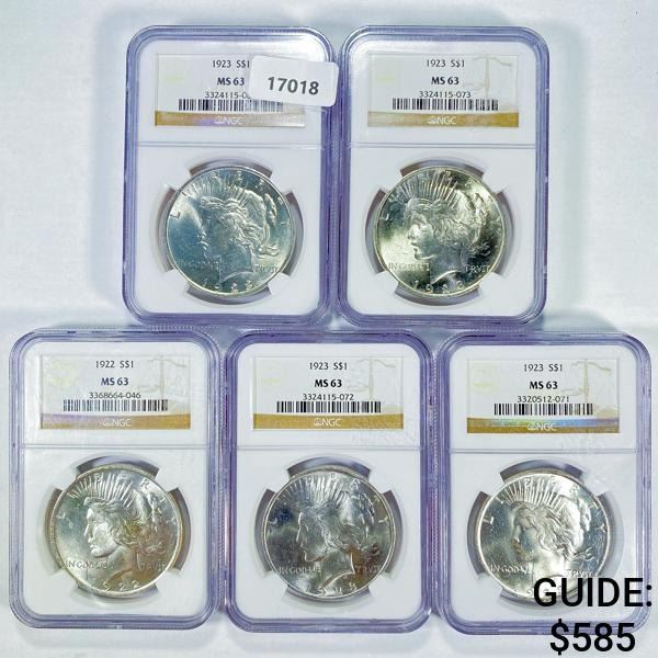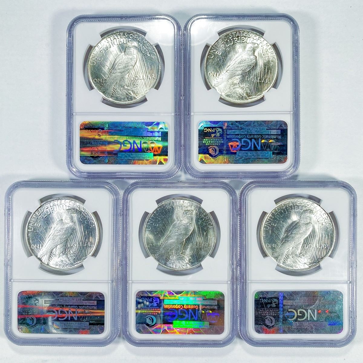 1922-1923 Set (5) Silver Peace Dollar NGC MS63