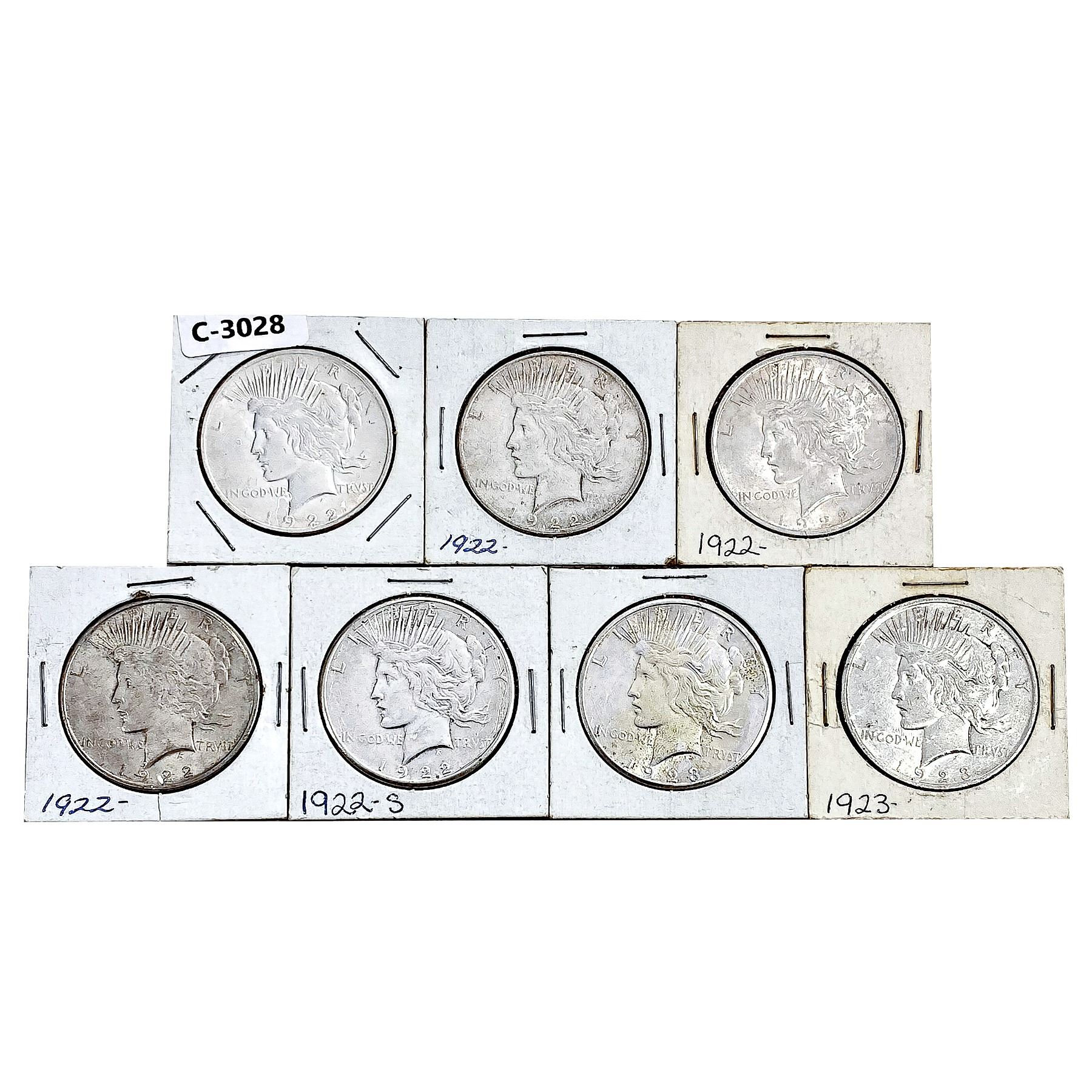 1922-1923 Silver Peace Dollars; Diff Mints [7 Coin