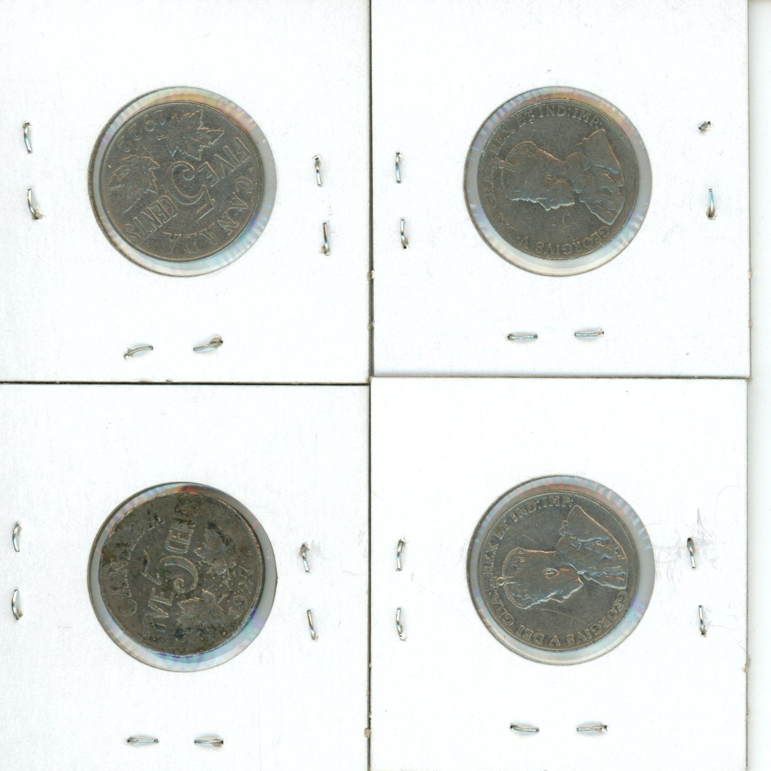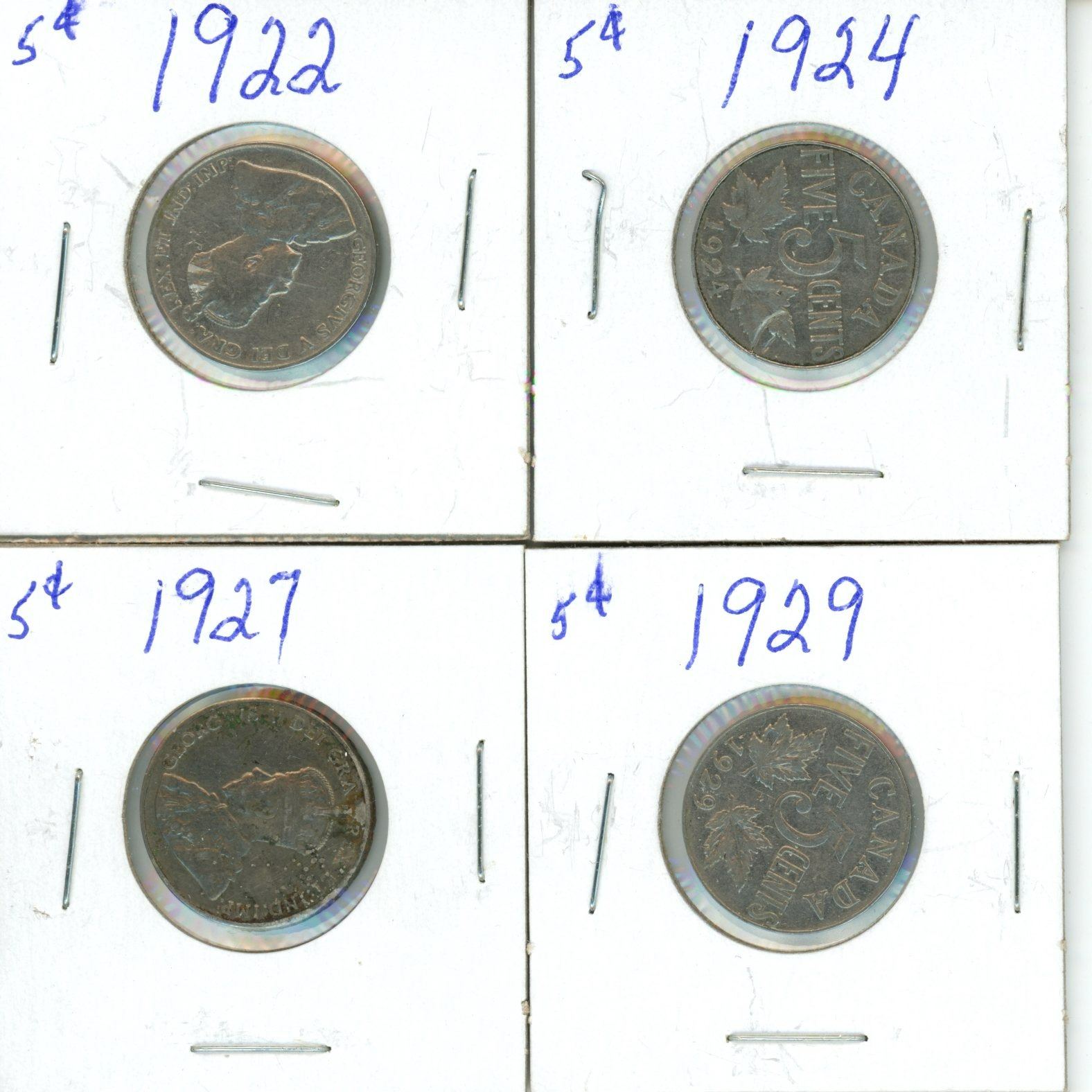 1922, 1924, 1927 and 1929 Canadian 5 Cent Coins