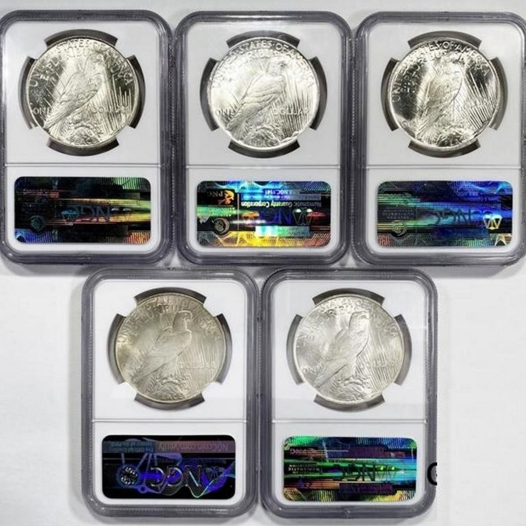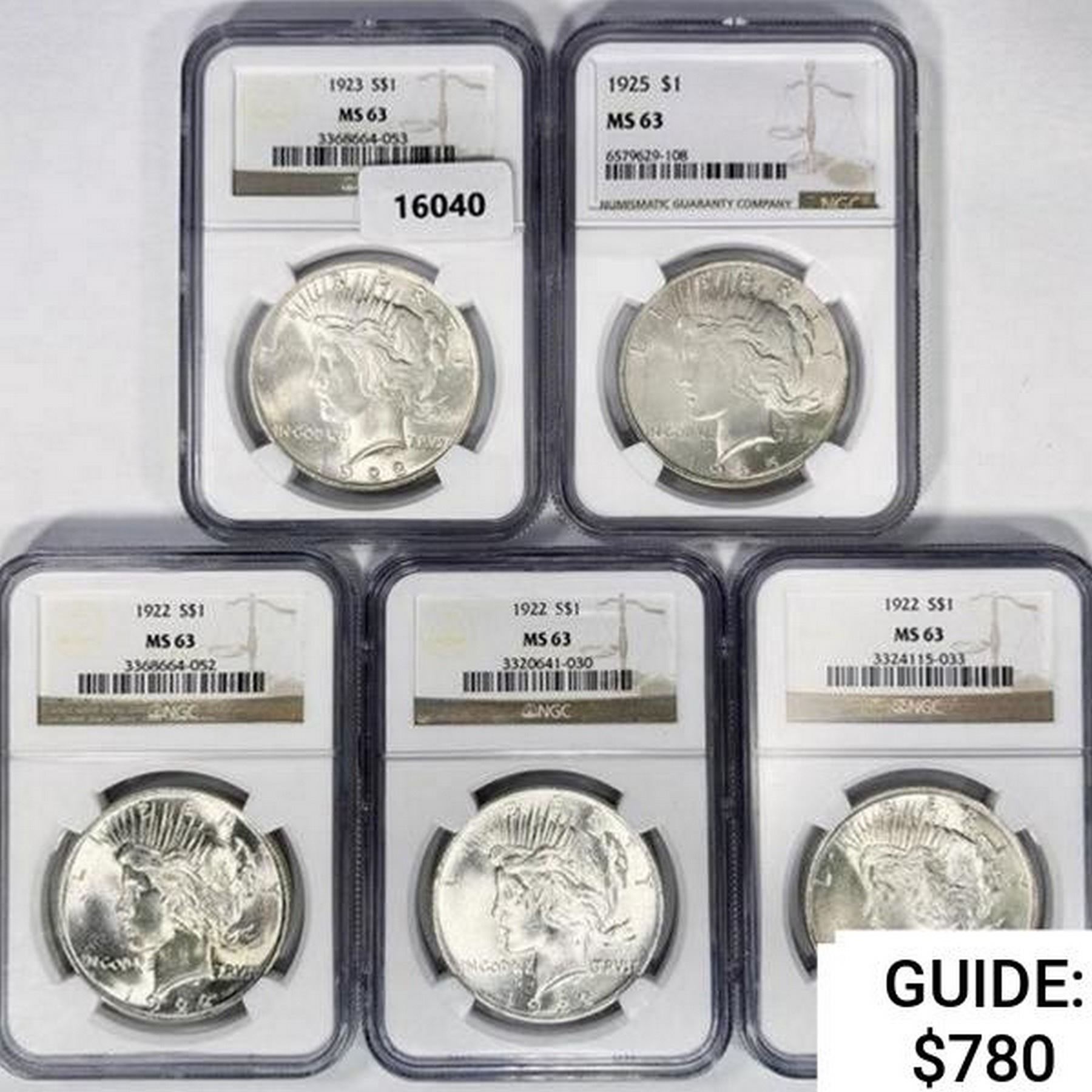 1922-1925 Set [5] Silver Peace Dollar NGC MS63