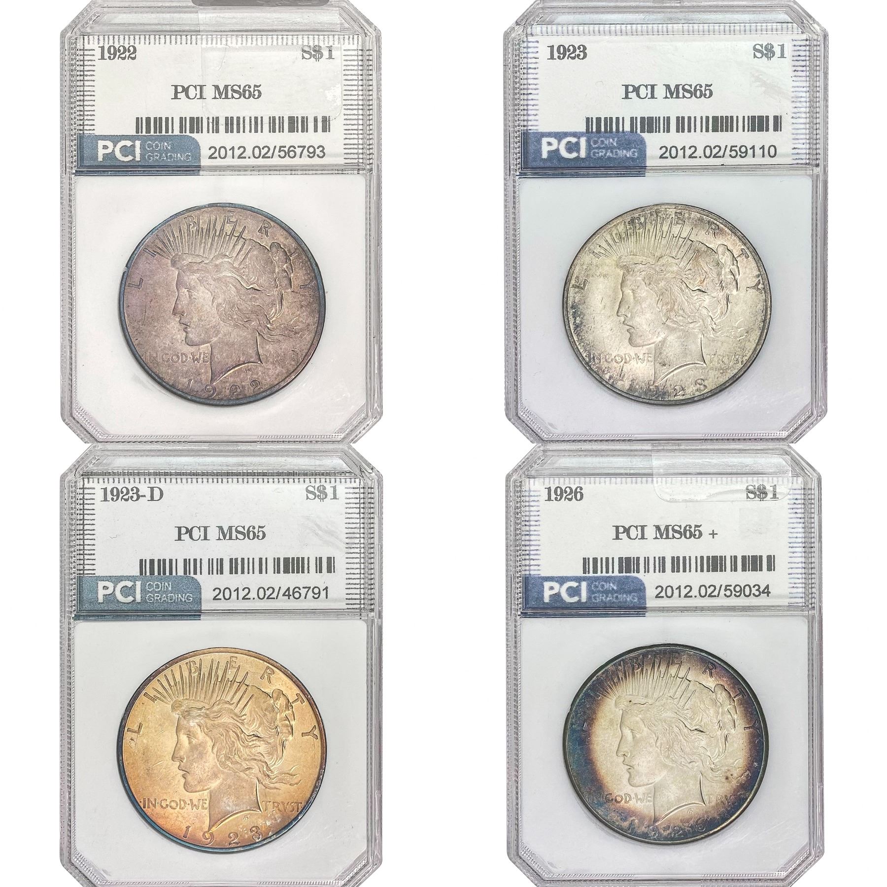 1922-1926 [4] Silver Peace Dollar PCI MS65