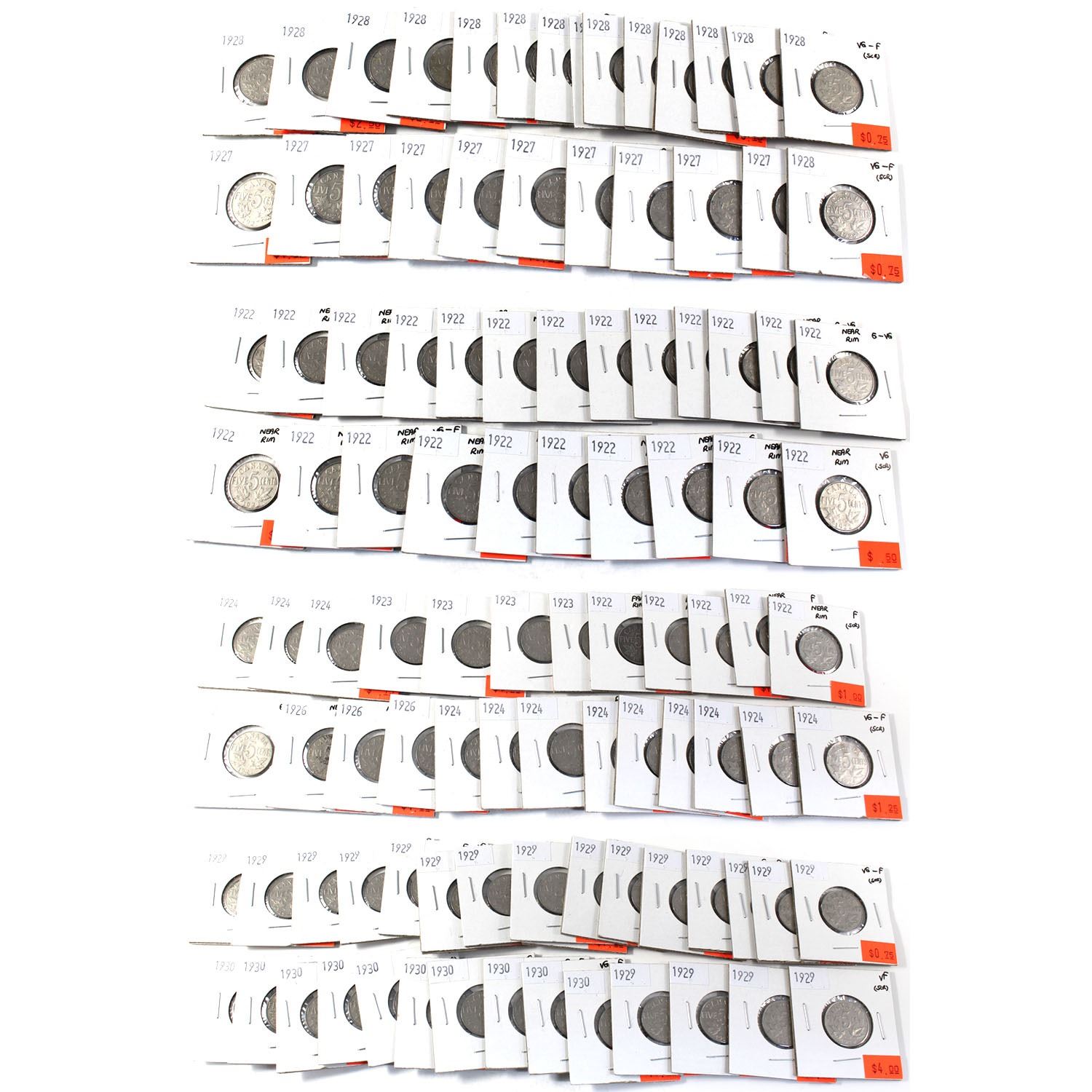 1922-1930 Canada 5-cent in Good to Very Fine. 107pcs
