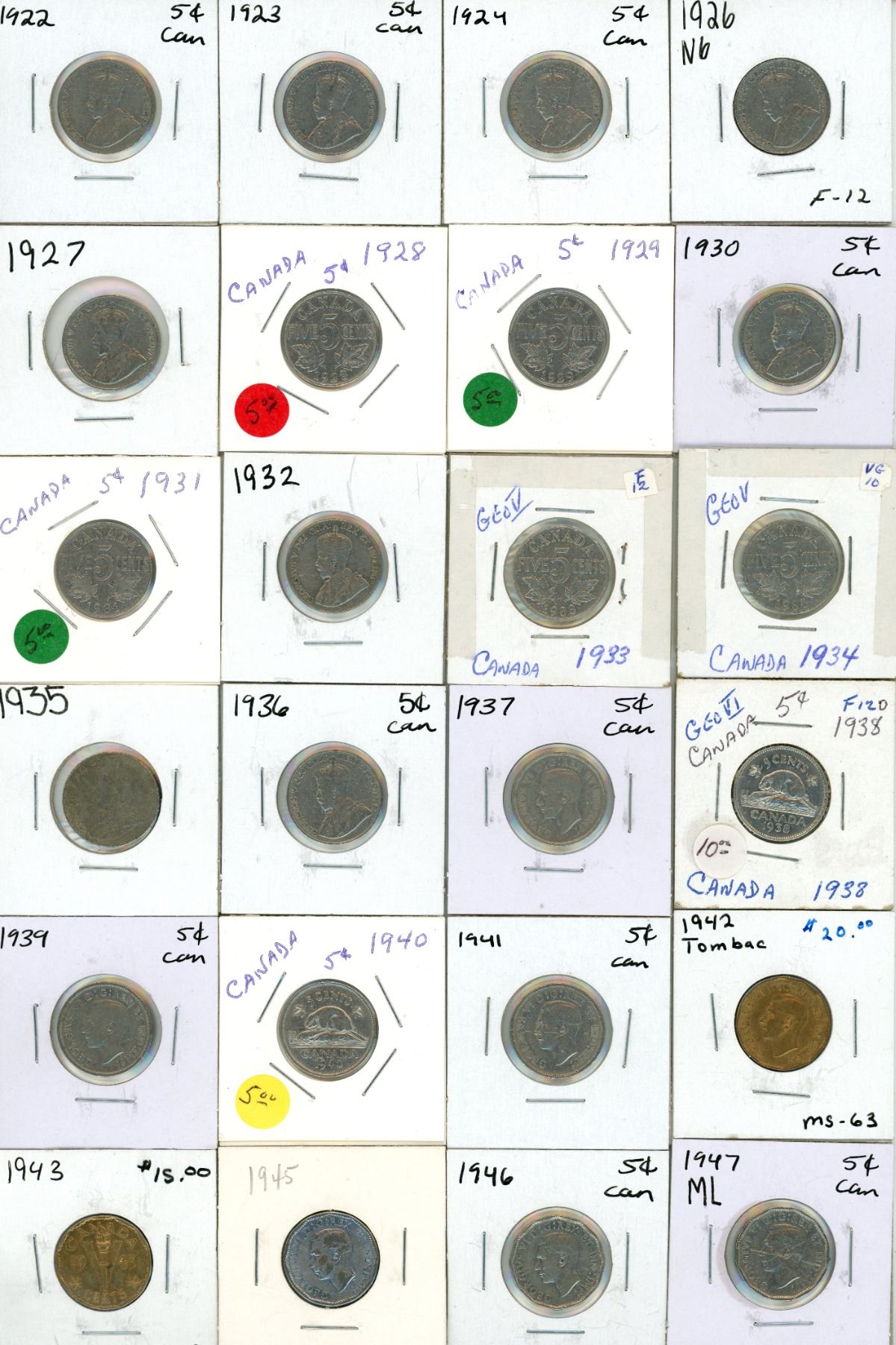 1922-1950 Canadian Five Cents.